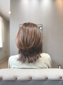 ミディアムレイヤーにトップ、サイドにハイライトを入れた動きと軽さのあるスタイルです。艶が素晴らしいヴィラロドラカラーと、グレーヘアも馴染むハイライトカラー、ステップボーンカットの立体感がポイントになります。