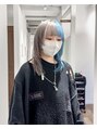 カットはミディアムウルフレイヤー。カラーは水色と薄めのシルバー半分ずつ