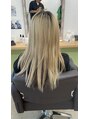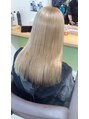 くすみをほんのり効かせたミルクティーベージュ。赤みや黄みを抑え、柔らかく透けるような質感に。髪質改善カラーでツヤとまとまりをプラスし、ブリーチ毛でもしなやかな手触りに仕上げました。