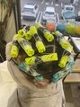毛先ワンカールで、中間は捻って巻き納めてランダムな動きを出しました
