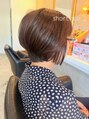 ブリーチなしピンクブラウン切りっぱなしボブニュアンスパーマ
