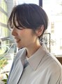 大人かわいい前下がりのハンサムショートはシャープに切ったライン、襟足をしめスッキリ見せたりと、メリハリを効かせステップボーンカットで絶妙なバランスに!カラーはアッシュブラックでつや感、質感をプラスし大人見えメンズライクなヘルシースタイルに!