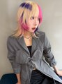 明るめブロンドをベースに、パープルとピンクをランダムに散りばめたデザインカラー。ウルフレイヤーの動きに合わせてカラーが映える、ポップでおしゃれなスタイル。個性的なのに柔らかさも残る絶妙なバランスで、周りと差がつくトレンドヘアです。