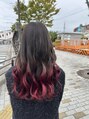 暗髪ベースにレッドのグラデーションカラー。派手すぎず上品に、でもしっかり印象を残す大人カラーです。光に当たるとツヤが際立ち、落ち着いたトーンの中にやわらかな女性らしさをプラス。季節の変わり目にぴったりな、“深み×透明感”のモードスタイル。