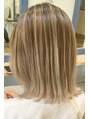 首周りがすっきり見えるボブスタイルにコントラストをしっかり効かせたハイライトデザイン