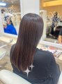 明るめで肌馴染みの良いベージュカラーです。美髪ケアコースでサラサラ、ツヤツヤです♪カットは毛先を揃えてまとまりやすくしました。