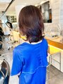 表面にレイヤーを入れたミディアムスタイル。毛先ワンカールで決まるスタイルです。表参道/レイヤーカット/ウルフレイヤー/ハイライト/白髪染め/ゼロテクカラー/白髪ぼかし/ロング/