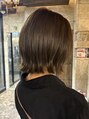 顔まわりにレイヤーを入れて抜け感を出した、軽やかな外ハネボブ。まとまりやすく、乾かすだけで自然に内巻き・外ハネがキマる扱いやすいスタイルです。オイルやバームでツヤを出して、程よいラフ感をプラスするのがおすすめ◎首元がすっきり◎