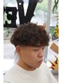 程よい抜け感と男らしさを兼ね備えた 波巻きパーマ × テーパーフェードスタイル。ラフに動く波打ちカールが立体感を生み、サイドから襟足にかけての ナチュラルなグラデーションフェード で、清潔感とシャープな印象をプラス。