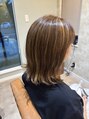 比較的くせ毛が強めの方です。スタイリングがしやすいように、かたつくくらいにしました。白髪ぼかしで、ハイライトたくさん入れています。