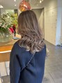 表面にレイヤーを入れたロングスタイル。ハイライトを入れより立体的に。毛先ワンカールで決まるスタイルです。表参道/レイヤーカット/ウルフレイヤー/ハイライト/白髪染め/ゼロテクカラー/白髪ぼかし/ロング/