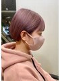 カットは少しだけグラデーションを入れたボブ。切りっぱなしとは違い丸みがあるフォルムになります。カラーは前回のブリーチに続き全体ブリーチ(根本1回)毛先(履歴2回目)ブリーチ後ピンクを入れて透明感を。【自毛の方はブリーチ2回必須です。】