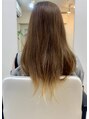 直毛・毛先ブリーチ履歴のお客様の、初デジタルパーマ。初めてなので毛先にワンカールかけるだけで、イメージが変わります。4ヶ月以上持つので、日々のスタイリングが簡単。ポニーテールにしても毛先が自然に巻き髪日なりますよ。