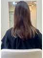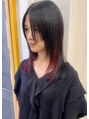 前回のインナーカラーの部分を今回は、ミステリアスなレッドに。全体を暗めに染めてコントラストをはっきりしたスタイル。耳にかけた時の色の出方が特徴的。カットは少し姫カットにして、顔周りはレイヤーで動きをだしてストレートアイロンでスタイリング。