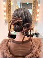 ロングのお客様アレンジ★シニヨン部分をリボン風にアレンジしてドレスと同じカラーのリボンで一気に華やかに♪