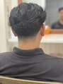 気になる部分をカバーくせ毛を活かしたローフェードにしました。ネープ,もみあげはウォール0.5スタートです。襟足はブロックにせずtaperで伸びた時の生え向きカバー