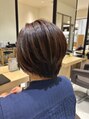 人気のショートボブです。お顔周りは長めに残すことで、気になりがちなフェイスラインをカバーします。表面にレイヤーをいれることで、ボリュームが出てシルエットがきれいにみえるのがポイントです!