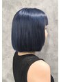顎ラインで切り揃えたボブスタイルは乾かすだけでまとまるのでお忙しい方にもぴったり!カラーはブリーチ1回でも発色しやすいネイビーカラーになっています!派手すぎず、色落ちも楽しめます。