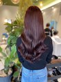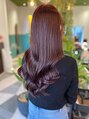 - 艶めくプラムブラウンで上品に。柔らかい波巻きが女性らしさを引き立てる大人ロング。