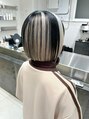 ホワイト×ブラックのブラックカラーと姫カットブロックカラー/デザインカラー/ローライト/ハイライト/ボブ/姫カット/姫カットボブ/ハイトーン/ブリーチカラー/