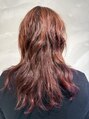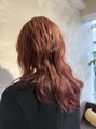 インナーはレッドピンク、ジュエルカラーはピンク系でまとめました。レイヤーを入れてパーマの動きを復活させカジュアルに仕上げています。フローディアトリートメントで内部補修もバッチリです。