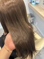 オリーブカラーがお好きなお客様です。少し雰囲気を変えたくてオリーブグレージュカラーにしました。透明感が出て綺麗なお色になりました。