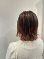 秋っぽい暖色オレンジ系のカラーでバレイヤージュボブ髪に立体感が出て軽い印象に!ブリーチ1回でできるのでダメージを気にされている方にもオススメ!