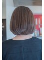 毛先に丸みを出したラウンドボブで大人のスタイルに。前髪をアシメショートバングにする事で少し個性が出せます。カラーはエイジングケアカラー(+1100円)で艶カラーに。