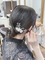 シンプルでタイトなアレンジを希望という事で、こんな感じにしてみました。ツヤ感を活かし、お持ち頂いたアクセサリーとの相性もバッチリでした!