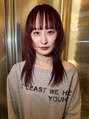 黒っぽいワインカラーにロングパーマがかわいいです◎