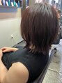 お手入れ楽ちんの切りっぱなしベースのレイヤーボブアイロンやコテでワンカールで仕上がる朝も時短のスタイルです。アレンジが苦手な方にもオススメ。カラーは秋色の赤紫系ボルドールビーです。
