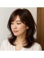 顔まわりに入れたレイヤーが軽やかに揺れるミディアムスタイル。自然なツヤと柔らかな毛流れで、上品さの中に優しい大人可愛さを感じさせます。