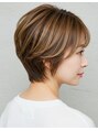 繊細なカットラインと艶やかなベージュカラーが魅力の大人ショート。柔らかく流れる毛流れが美しく包み込みます。ハイライトを控えめに入れることで、自然な立体感と上質なツヤ感を演出。上品で洗練された印象を求める大人女性におすすめのスタイルです。