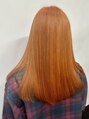 秋っぽくオレンジ系の色にベージュのやわらかい質感をプラス!!オレンジ系は色持ちもGood◎ブリーチ1回できれいに発色するので、最低限のダメージで派手髪に♪