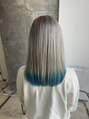 毛先のブルーがポイントになっていてストレートでも巻いてもアップにしても可愛いスタイルです
