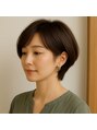 軽やかな動きと自然なツヤが美しいショートボブ。後頭部にふんわりとした丸みを持たせ、顔まわりを包み込むようにカットした上品で柔らかなスタイル。