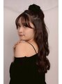 高めの位置でハーフアップ後ろは巻いてガーリーに。