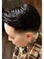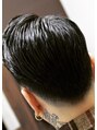 ハードパートで流したバーバースタイル。周りはスキンフェードにしながらも低めに設定することでより大人っぽさを演出。