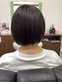 ショートボブ。毛量調整のため後ろはツーブロックにしています。毛先のまとまり感を残しつつ、動きが出るようにしてスタイリッシュで大人なイメージです。