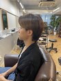 黄味が強く出ている状態から透明感のあるグレージュカラーに。カットは襟足をタイトにする事で、頭のシルエットをコンパクトに。