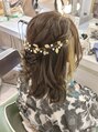 インナーカラーが見えるように耳出さないハーフアップ+後ろにお団子