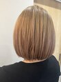 カットは乾かすだけで簡単スタイル。カラーはブリーチ後、ベージュ系で柔らかさを出しました。