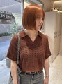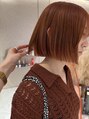 ブリーチ1回ベースでつくるオレンジカラー。パキッとしすぎずに少しブラウンを混ぜたオレンジ。秋らしく大人っぽくてかわいいです!カットは顎ラインで切ったぷつっとボブ。