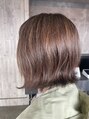 肩に付くくらいのミディアムスタイル。外ハネにして軽やかさを。カラーはオレンジ味をほんのり入れたベージュ系で大人フェミニンさを出しました