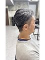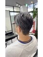 グレーヘアを活かした大人ショート。計算されたフォルムと自然な流れで、渋さと清潔感を両立。ナチュラルセットでも決まる扱いやすいスタイルです。