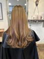少しハイライトが入ったカラーリング重くない段があることでコテでワンカールしただけで素敵な動きが出ます