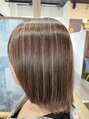 細かく入れたハイライトで、自然な立体感をプラス。ストレートでも動きを感じる柔らかい仕上がりに。明るくしすぎず、肌なじみのいいブラウンベースで上品な印象に仕上がります。30代・40代の大人女性におすすめの、ナチュラルハイライトスタイルです。