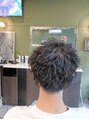 波巻きパーマとスパイラルを混ぜたデザイン。2ブロック/フェード/メンズサロン/バーバースタイル/シェービング/ヘッドスパ/頭浸浴/25歳~50代/スキャルプケア/頭皮環境改善/モデニカアート/BASARA/ボタニエンス