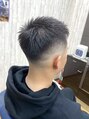 サイドからバックにかけてスッキリと刈り上げたフェードスタイル。トップは動きが出るように短く立たせて、全体のバランスを計算したスパイキーヘアに仕上げています。爽やかさと清潔感が抜群で、ビジネスシーンにもカジュアルにもハマる万能スタイル