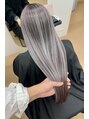 シャドールーツまたはバレイヤージュで作るシルバーベージュのコントラストカラー。テーパーフェード/アクティブショート/リバースセンターパート/バレイヤージュ/ハイライト/レイヤーカット/スパイキーヘア/ツーブロパーマ/コンマセンターパート